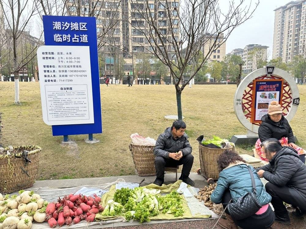 去年4月以來,南川區(qū)探索在小區(qū)周邊等區(qū)域設立“潮汐攤區(qū)”,目前已設置攤區(qū)31處、攤位2100余個,引導瓜果農(nóng)、流動菜農(nóng)、經(jīng)營攤販免費入位規(guī)范經(jīng)營,實行“攤位+攤主自治”模式,早中晚定時、規(guī)范定點、統(tǒng)一管理?!斑@讓居民在家門口就能吃上新鮮瓜果蔬菜,也有助于規(guī)范流動攤販管理?!蹦洗▍^(qū)城市管理局局長姚濤說。