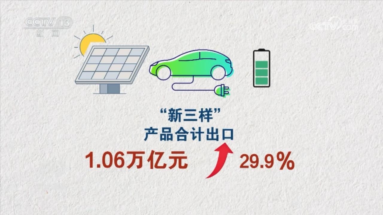 2023年,我國出口機(jī)電產(chǎn)品13.92萬億元,增長了2.9%,占出口總值的58.6%;同期勞動(dòng)密集型產(chǎn)品出口4.11萬億元,占出口總值的17.3%。機(jī)電產(chǎn)品中,電動(dòng)載人汽車、鋰離子蓄電池及太陽能電池“新三樣”產(chǎn)品合計(jì)出口1.06萬億元,首次突破萬億元大關(guān),增長了29.9%。船舶、家用電器的出口分別增長35.4%和9.9%。