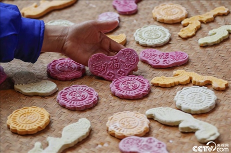 進入臘月,安徽省黃山市徽州區(qū)潛口鎮(zhèn)潛口村,村民用新鮮的果蔬汁制作出多彩徽州米粿,色彩各異、造型別致的米粿琳瑯滿目,透出濃濃的年味。