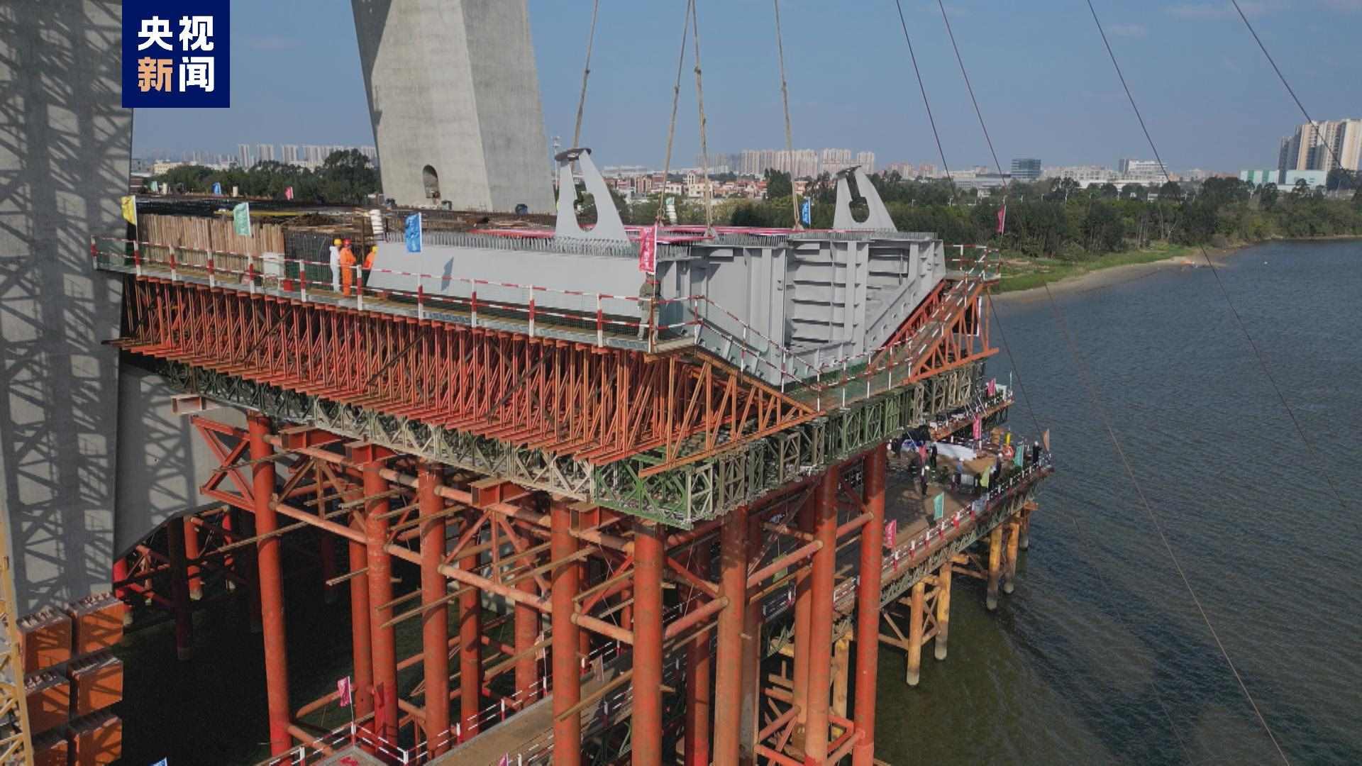 1月21日上午,廣湛高鐵佛山特大橋首片鋼梁吊裝順利完成,標(biāo)志著大橋鋼梁架設(shè)全面展開,正式進(jìn)入主橋鋼梁架設(shè)的關(guān)鍵階段。
