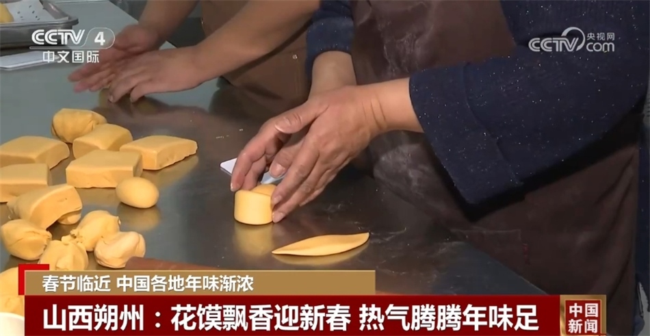 在山西朔州市的一家面塑花饃店里,面點(diǎn)師傅們正在趕制花饃等傳統(tǒng)美食,為即將到來(lái)的新春佳節(jié)做足準(zhǔn)備。由果蔬調(diào)色、純手工制作的花饃不僅口感好,而且造型精美,備受顧客青睞。