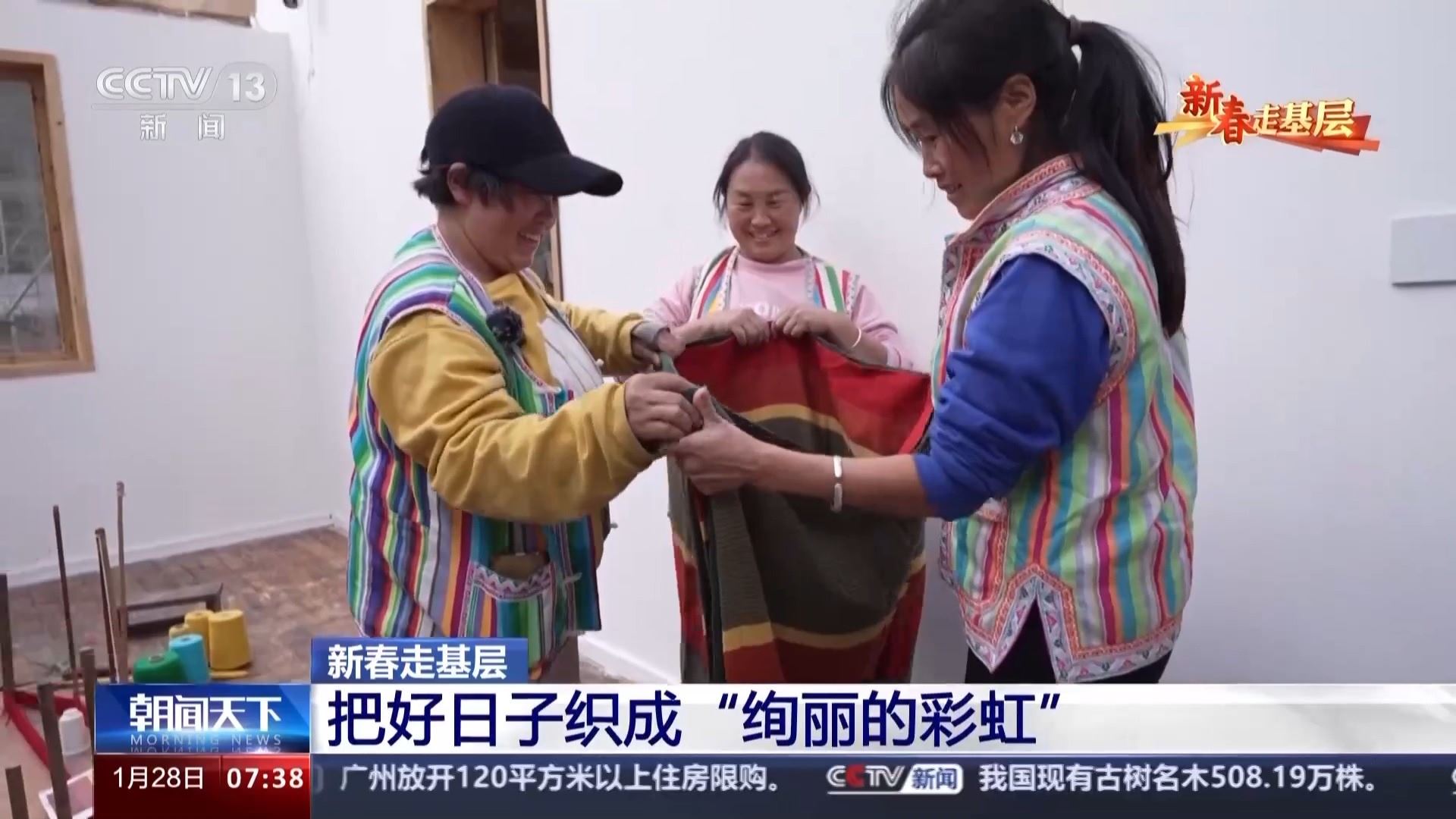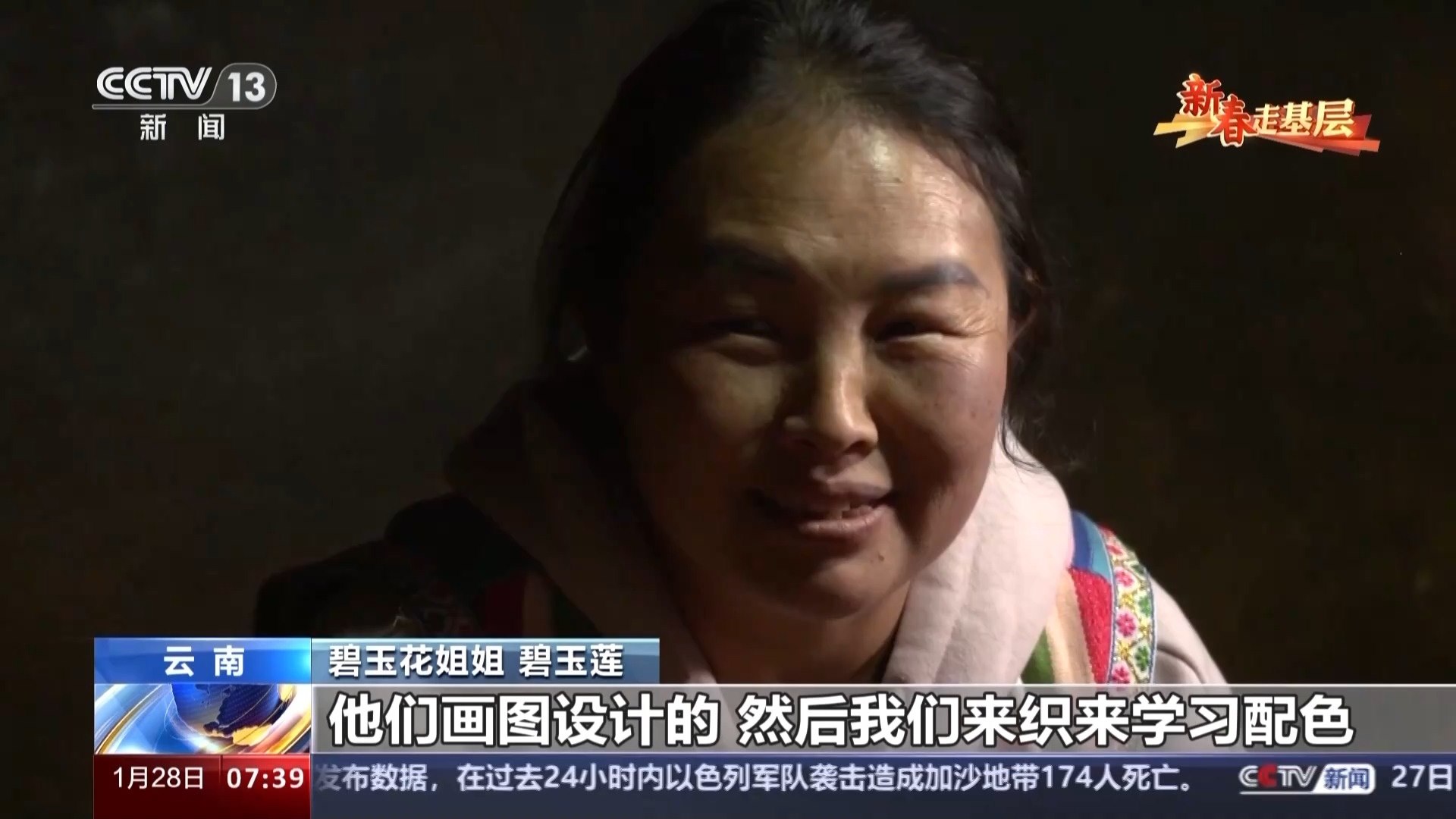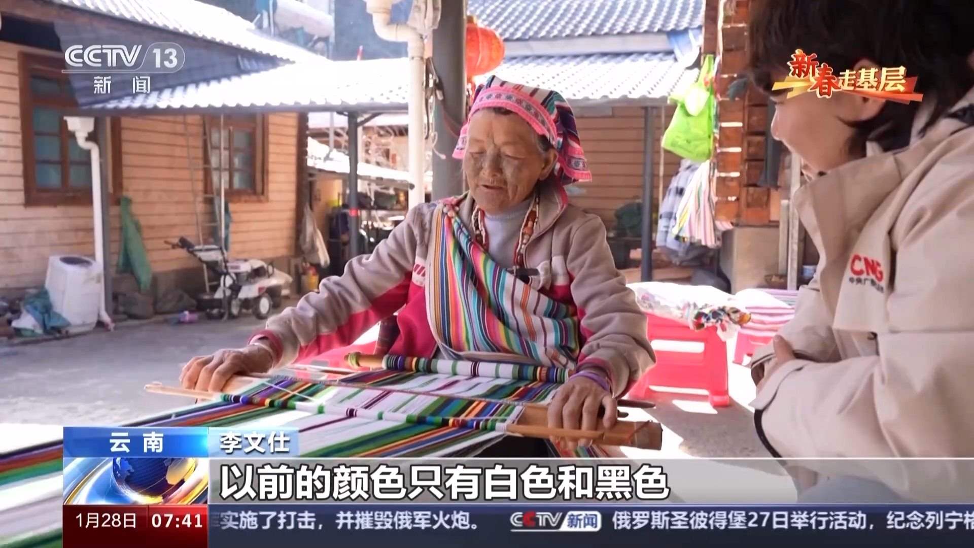 李文仕:以前的顏色只有白色和黑色,現(xiàn)在的顏色是七彩的,有很多種。心里真的很高興看到獨龍?zhí)嚎梢再u到各個地方。可惜的是我們年紀大了,眼睛不好了,沒法織出更好的毯子了,但是我們希望年輕人可以好好發(fā)展,承擔起傳承的擔子。