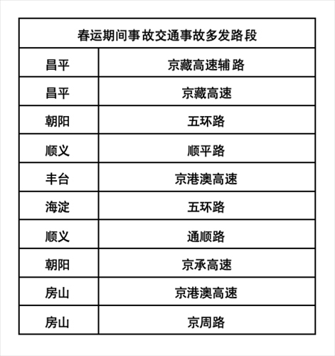 近日,北京交管部門(mén)公布2024年春運(yùn)期間交通流預(yù)判和易擁堵路段,交通事故多發(fā)路段。