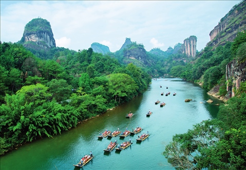 游客在福建省武夷山國(guó)家公園九曲溪乘船游覽(2023年10月3日攝)。陳穎攝/本刊
