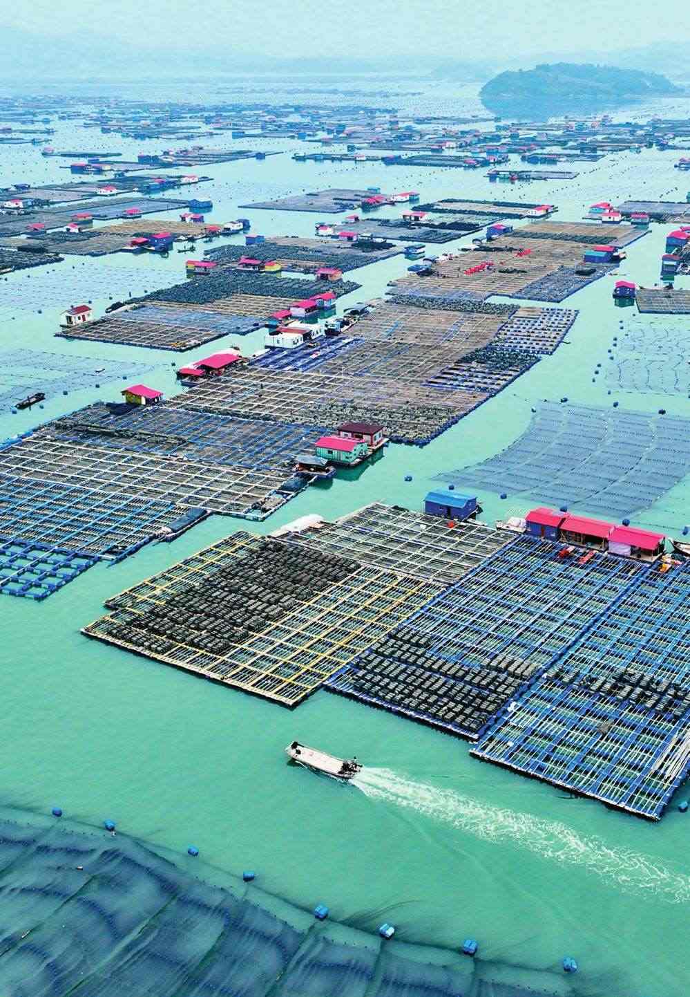晨光灑在海面,萬(wàn)頃碧波間,一列列網(wǎng)箱如同阡陌縱橫的海上農(nóng)田,色澤金黃的大黃魚(yú)悠然歡游,穿梭其間的漁民們徜徉在“金黃色的美夢(mèng)”中。