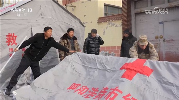 甘肅省臨夏州積石山縣石塬鎮(zhèn)振興社區(qū)副主任孔德義:“他發(fā)揮的作用特別大,因?yàn)樗吘故遣筷?duì)出身,身體素質(zhì)好,搭帳篷這一塊特別強(qiáng)。有他在的話,5分鐘就能完成一個(gè),效率特別高。還有像如何規(guī)避余震帶來(lái)的傷害,他先給先鋒隊(duì)講解,我們?cè)僦饌€(gè)分散開(kāi)給群眾講解,等同于一個(gè)專業(yè)人士帶領(lǐng)著先鋒隊(duì)去幫助更多的群眾,去服務(wù)群眾?!?/p>