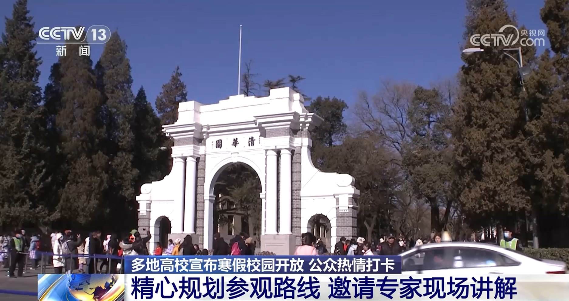 清華大學(xué)保衛(wèi)部 張運騰:因為寒假的時候,學(xué)校仍然有一些教學(xué)科研的任務(wù)還在進行,到一些教室或者實驗室周邊,希望能夠輕音輕語,文明參觀。我們也在這里也特別倡導(dǎo)大家進入校園以后能夠遵守學(xué)校的管理的一些規(guī)定。