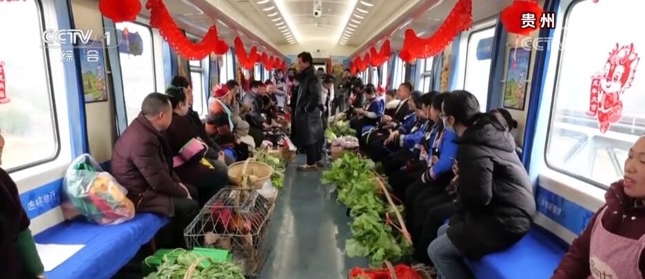 買年貨,除了商超、集市,批發(fā)市場,還可以在火車上。在貴州,有一趟往返于貴陽與玉屏之間的“慢火車”5640次列車,里面專設了一個農(nóng)特產(chǎn)品車廂。新春臨近,列車上的農(nóng)特產(chǎn)品車廂變得熱鬧起來,村民們將自家養(yǎng)殖的土雞、雞蛋,熏制的香腸、臘肉,以及水果、蔬菜帶上列車,向旅客現(xiàn)場售賣,車廂里喜氣洋洋。