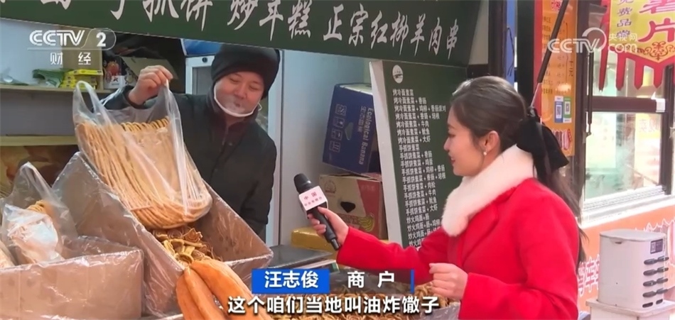 總臺記者 馬雅慧:今天一來到這里我就聞到了濃濃的香料味兒,大家看我身旁的這些都是青海特色的油炸年饃,當(dāng)?shù)厝艘步杏驼ü印@习?,我看這里款式各式各樣的都有,您能給我們介紹一下嗎?