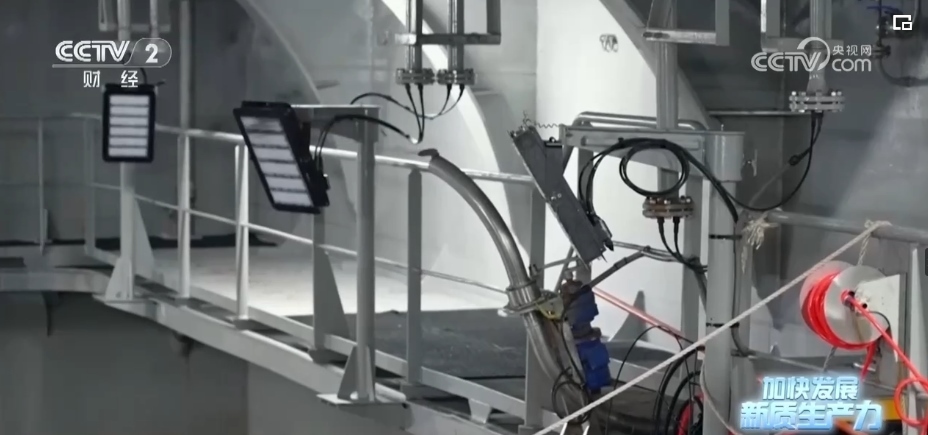 依靠首創(chuàng)的“船載艙養(yǎng)”模式,國信1號養(yǎng)殖工船,每年能實現(xiàn)3700噸高品質(zhì)魚類和650噸優(yōu)質(zhì)蛋白的供給。到了收獲的時候,艙內(nèi)的大黃魚將通過吸魚泵和傳送帶直接轉(zhuǎn)運至休眠池,在那里進行快速降溫休眠鎖鮮。