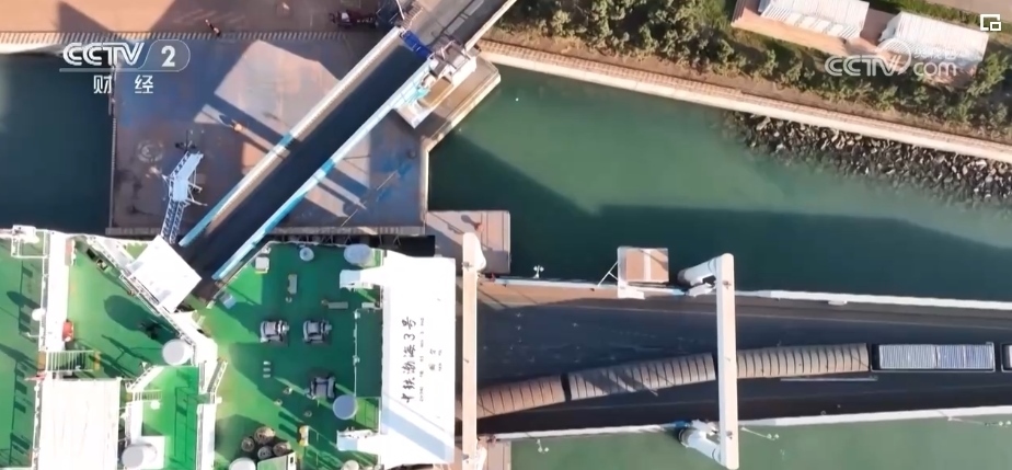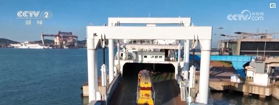 中鐵渤海3號渡船全長182.6米、寬24.8米,滿載排水量可達16229噸,單航次可載運一列50節(jié)貨物列車和50輛載重汽車、25輛小汽車以及716名旅客。