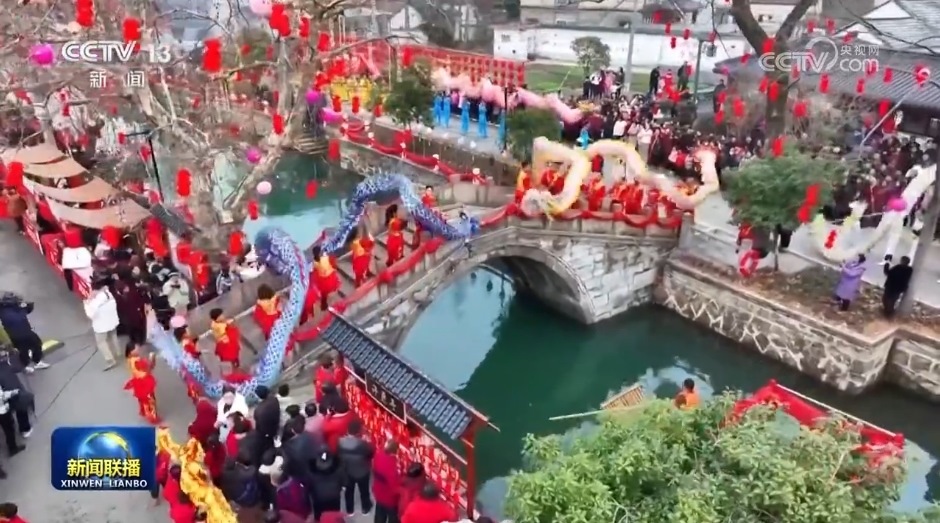 龍騰盛世,鑼鼓喧天。在安徽潁上,在浙江長興,舞龍表演隊(duì)沿街巡游,為百姓送去新春祝福。在江蘇宿遷,充滿年味的民俗表演將新春的氛圍拉滿。在云南昆明,彝族、哈尼族、瑤族、傣族等不同民族的特色鼓舞表演,場面熱烈奔放。今天也是藏歷新年的大年初一,在西藏日喀則、山南等地,人們身著節(jié)日盛裝,品美食、做游戲、唱歌跳舞,熱熱鬧鬧過大年。
