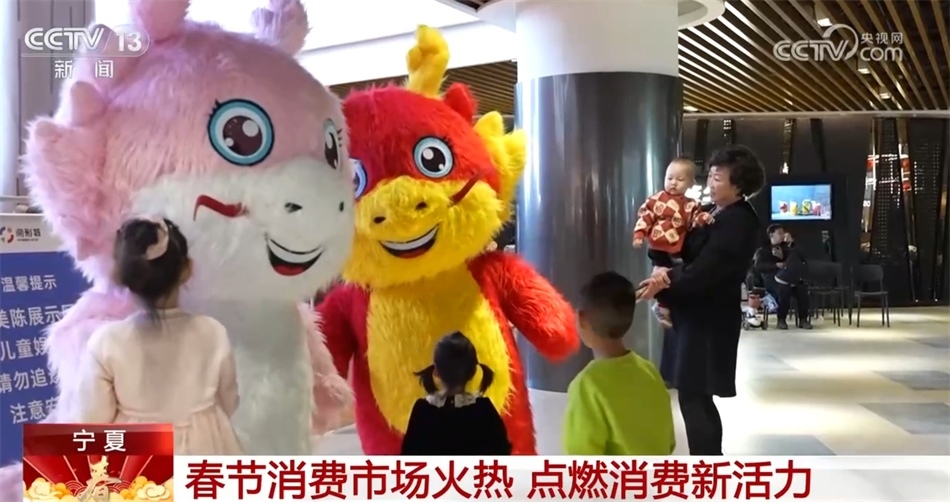 春節(jié)期間,寧夏也推出了一系列迎新春促消費(fèi)活動(dòng)。在寧夏銀川市金鳳區(qū)的一家大型商業(yè)綜合體里,各種以龍為元素的裝扮讓整個(gè)商場(chǎng)里年味十足。