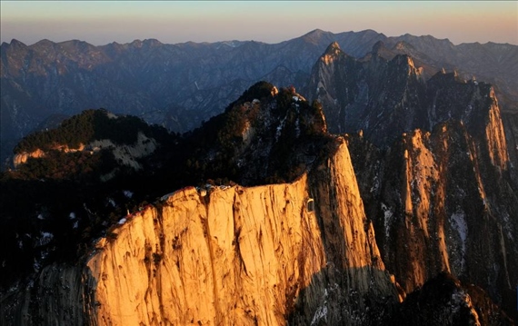 春節(jié)假期,西岳華山每天有超2萬人次的游客登山觀景。圖為日落時分的華山群峰。