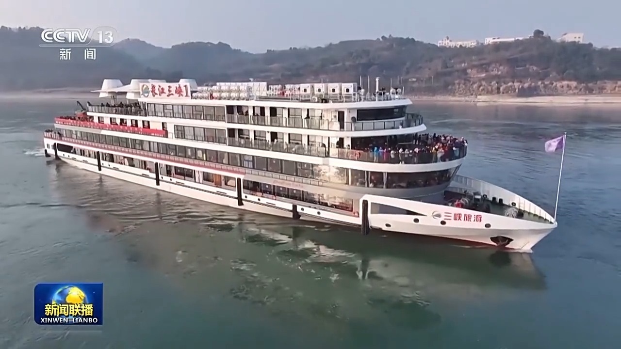 在長江上,全球載電量最大的純電動游輪“長江三峽1”號,大年初二滿載1300名游客開啟龍年首航?!傲阄廴?、零排放”游長江,成為新年新時尚。