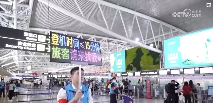 還有15分鐘登機(jī),這在平時(shí)不算晚??稍诔醢说某龈鄹叻謇?,如果沒有志愿者的及時(shí)指引,旅客就很有可能錯(cuò)過飛機(jī)。