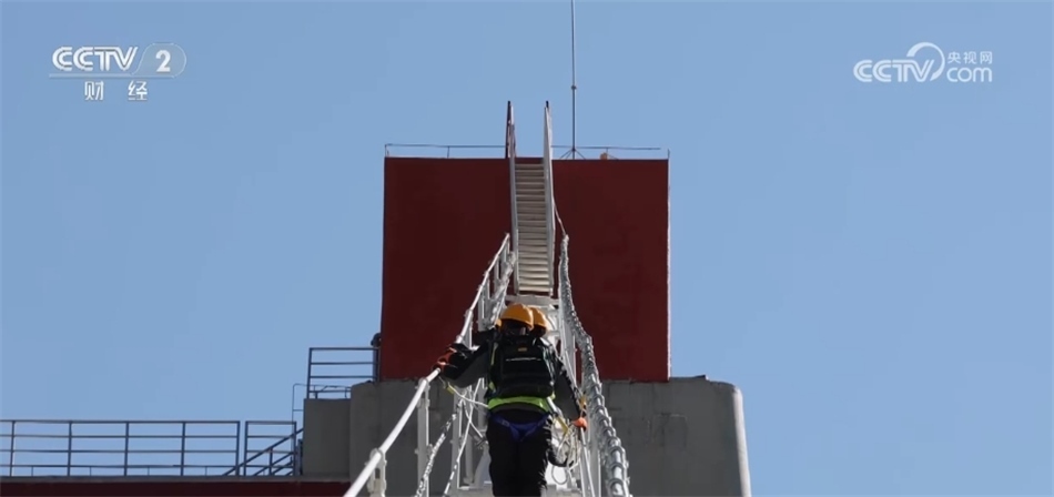 經(jīng)過(guò)30分鐘左右的攀爬,他們到達(dá)了整座大橋最高的位置,開(kāi)始檢查鞍罩。鞍罩就是像馬鞍一樣的罩子,主要是為了保護(hù)邊跨和主跨的連接部位,鞍罩內(nèi)還裝有大橋健康檢測(cè)系統(tǒng)和除濕系統(tǒng),實(shí)時(shí)監(jiān)控大橋的健康狀態(tài)。