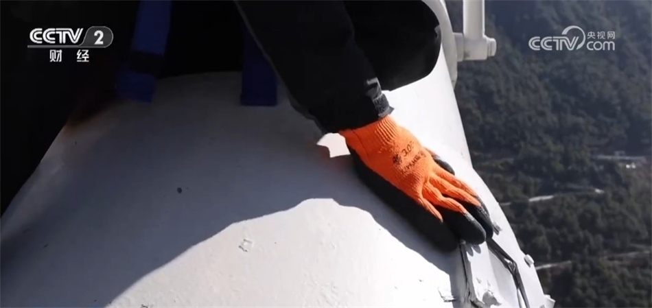 106個(gè)索夾、2000多顆螺栓,楊應(yīng)文帶著工友一處一處仔細(xì)檢查,在檢查梯上每移動(dòng)兩米就要重新扣一次安全繩。