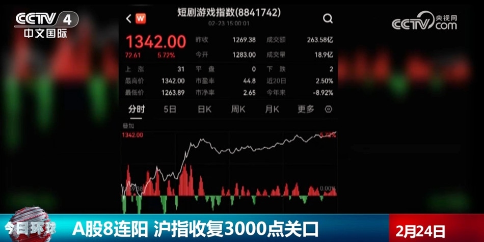 A股8連陽 滬指收復3000點關(guān)口