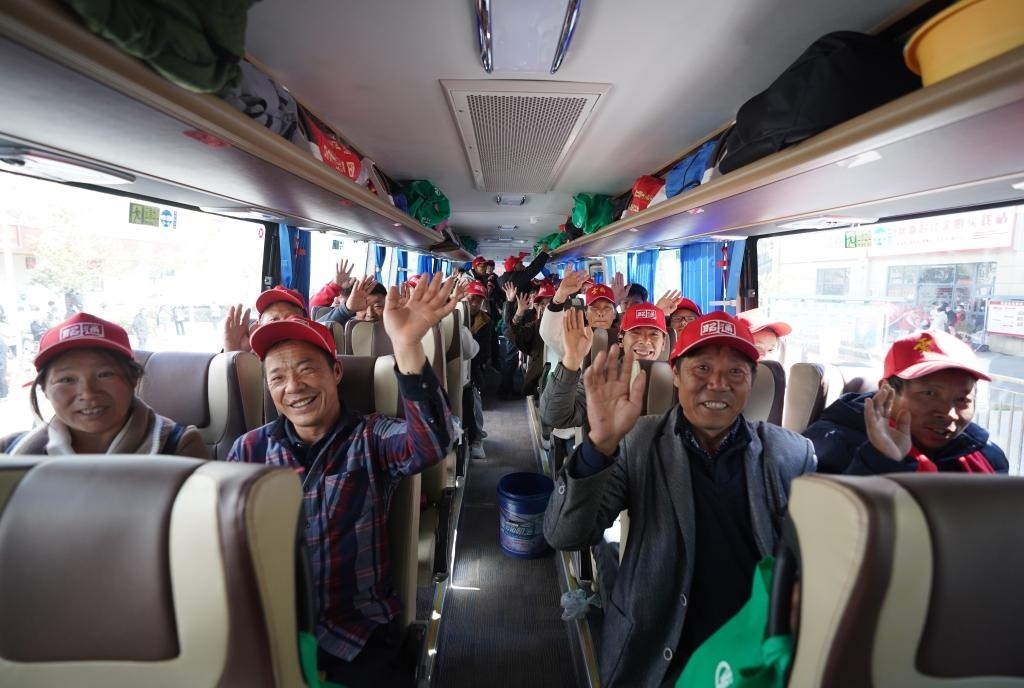 “這是我首次乘坐免費的務工專車,途中還提供用餐,政府把我們直接送到‘廠門口’就業(yè),我覺得很貼心?!眲展と藛T冉茂軍說。