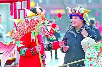 “太熱鬧了,感覺(jué)又找回了小時(shí)候的過(guò)年氛圍?!痹诒本┚用駨埵|的記憶里,傳統(tǒng)廟會(huì)就是年味的象征。大年初一,她和家人早早來(lái)到北京廠甸廟會(huì)。廟會(huì)上,巡游表演精彩不斷,皮影作品、年畫展、寫福字活動(dòng)等文氣十足。今年春節(jié),北京廟會(huì)全面開(kāi)放,龍?zhí)稄R會(huì)、地壇廟會(huì)、八大處廟會(huì)等幾處新年廟會(huì)盛況空前,來(lái)自各地的游客在濃濃的煙火氣里感受地道的“老北京味兒”。