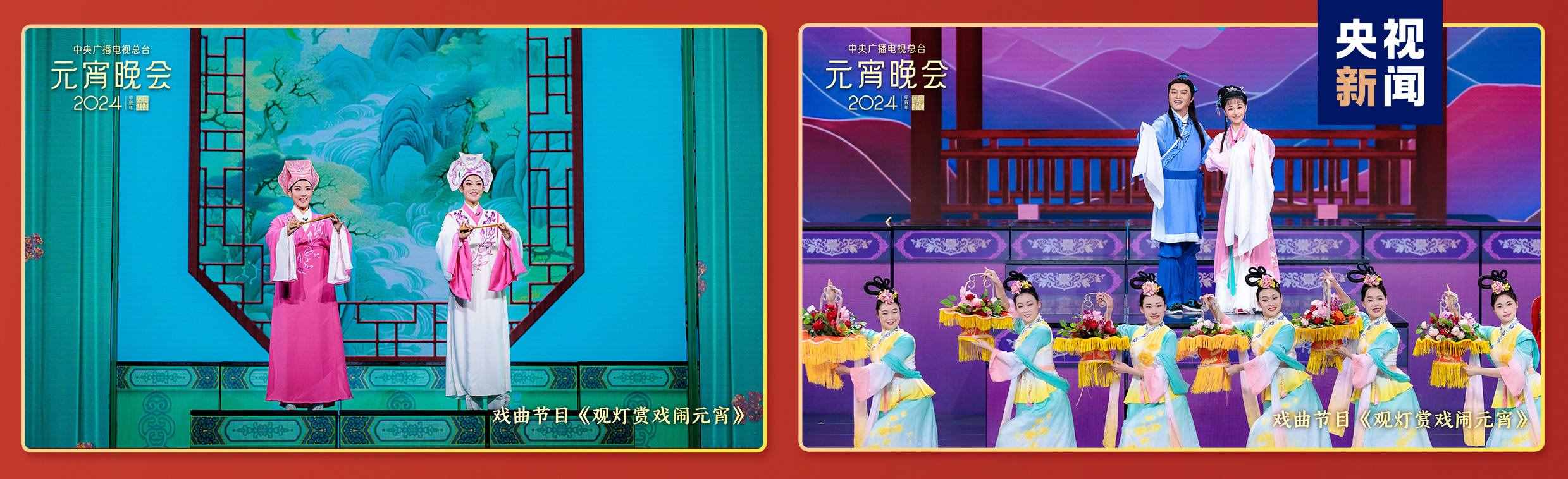 戲曲節(jié)目中,伴隨著“火樹千春妍,元夕月正圓,歡歌笑語喧”的戲腔戲韻,閩劇戲歌首次亮相總臺元宵晚會。其他劇種還玩上了跨界表演,熟悉的旋律響起,站在舞臺上的表演者卻是令人直呼意外的“混搭”組合。陳麗君與黃齡攜手帶來越劇《梁?!愤x段,潘檸靜與沙溢共唱黃梅戲《天仙配》,在上元之夜演繹傳世愛情故事,“戲曲真的出圈了”“誰說年輕人不聽戲,永遠為經典唱段打call”。