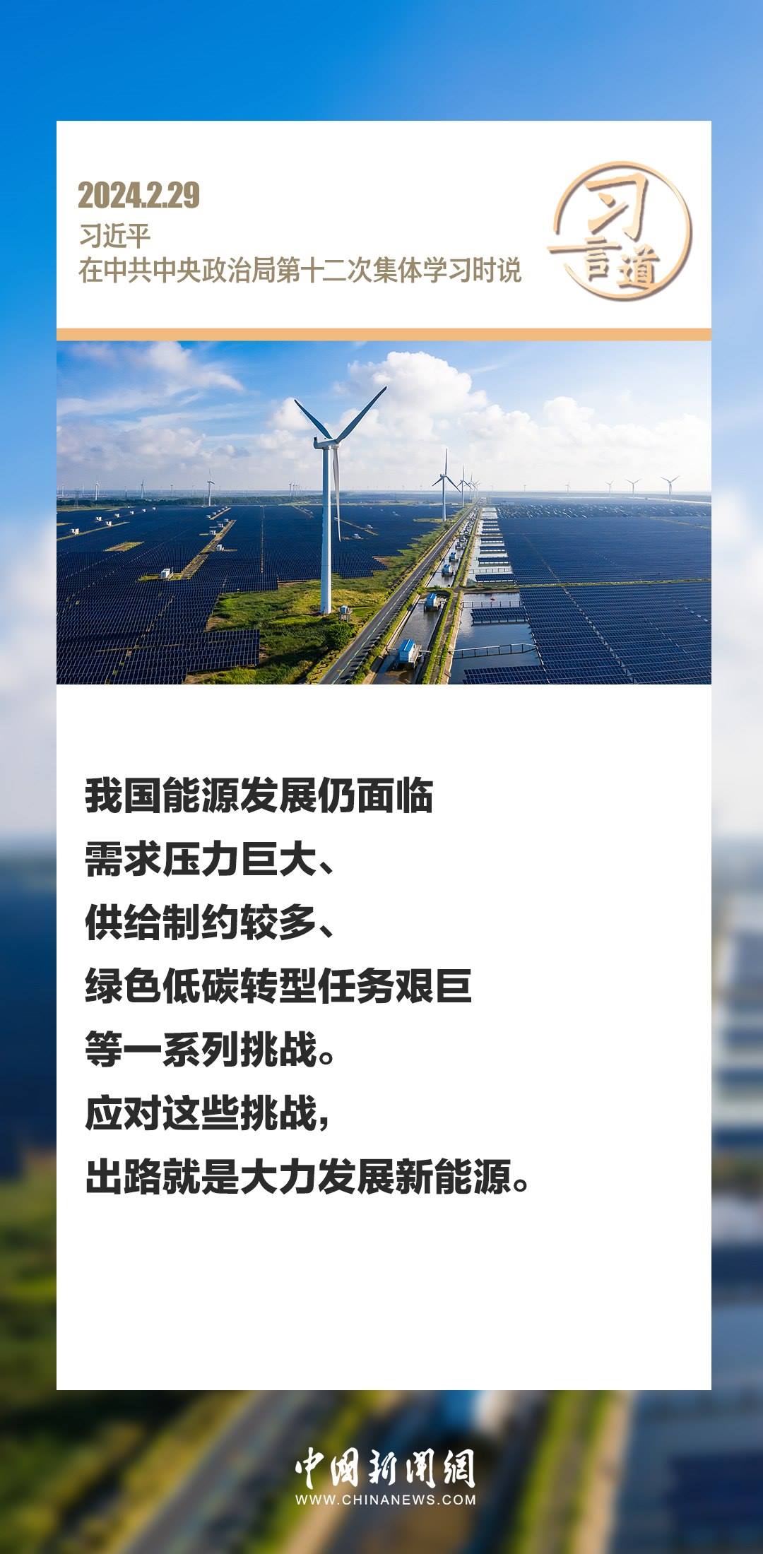 中共中央政治局2月29日下午就新能源技術(shù)與我國的能源安全進行第十二次集體學(xué)習(xí)。中共中央總書記習(xí)近平在主持學(xué)習(xí)時強調(diào)——