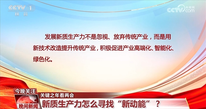 央視網(wǎng)消息:今年全國(guó)兩會(huì),“新質(zhì)生產(chǎn)力”成為備受關(guān)注的熱詞之一。如何因地制宜推動(dòng)新產(chǎn)業(yè)、新模式、新動(dòng)能發(fā)展,代表委員們給出建議。