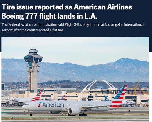 ·波音再出安全事故!美國航空一架波音777飛機(jī)疑似起飛時“爆胎”。