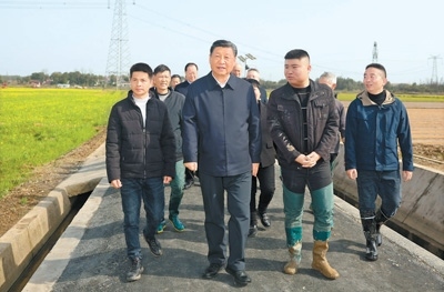 湖南是全國13個(gè)糧食主產(chǎn)省之一,水稻播種面積、總產(chǎn)量均居全國第一。當(dāng)天下午,習(xí)近平來到常德市鼎城區(qū)謝家鋪鎮(zhèn)港中坪村,走進(jìn)當(dāng)?shù)丶Z食生產(chǎn)萬畝綜合示范片區(qū),察看秧苗培育和春耕備耕進(jìn)展,聽取高質(zhì)量推進(jìn)農(nóng)業(yè)現(xiàn)代化情況介紹,并同種糧大戶、農(nóng)技人員、基層干部一筆一筆算投入產(chǎn)出賬。習(xí)近平強(qiáng)調(diào),我國有14億多人口,糧食安全必須靠我們自己保證,中國人的飯碗應(yīng)該主要裝中國糧。要建設(shè)好高標(biāo)準(zhǔn)農(nóng)田,推行適度規(guī)模經(jīng)營,加強(qiáng)政策支持和示范引領(lǐng),加大良種、良機(jī)、良法推廣力度,在精耕細(xì)作上下功夫,進(jìn)一步把糧食單產(chǎn)和品質(zhì)提上去,讓種糧也能夠致富,進(jìn)而吸引更多農(nóng)戶參與發(fā)展現(xiàn)代化大農(nóng)業(yè),真正把中國特色農(nóng)業(yè)現(xiàn)代化之路走穩(wěn)走扎實(shí)。