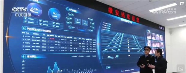 楊景瑞介紹,雄安站跟以前他工作過的其他高鐵站相比,有很多令人眼前一亮的特點。比如車站頂部鋪設(shè)了光伏板,能自己發(fā)電。同時,這還是一座智能車站,擁有自己的“智慧大腦”。