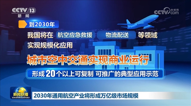 工業(yè)和信息化部表示,到2030年,我國將在航空應(yīng)急救援、物流配送等領(lǐng)域?qū)崿F(xiàn)規(guī)?;瘧?yīng)用,城市空中交通實現(xiàn)商業(yè)運行,形成20個以上可復(fù)制、可推廣的典型應(yīng)用示范。打造10家以上具有生態(tài)主導(dǎo)力的通用航空產(chǎn)業(yè)鏈龍頭企業(yè)。形成萬億級規(guī)模的通用航空產(chǎn)業(yè)市場。以高端化、智能化、綠色化為特征的通用航空產(chǎn)業(yè)發(fā)展新模式在我國將基本建立。