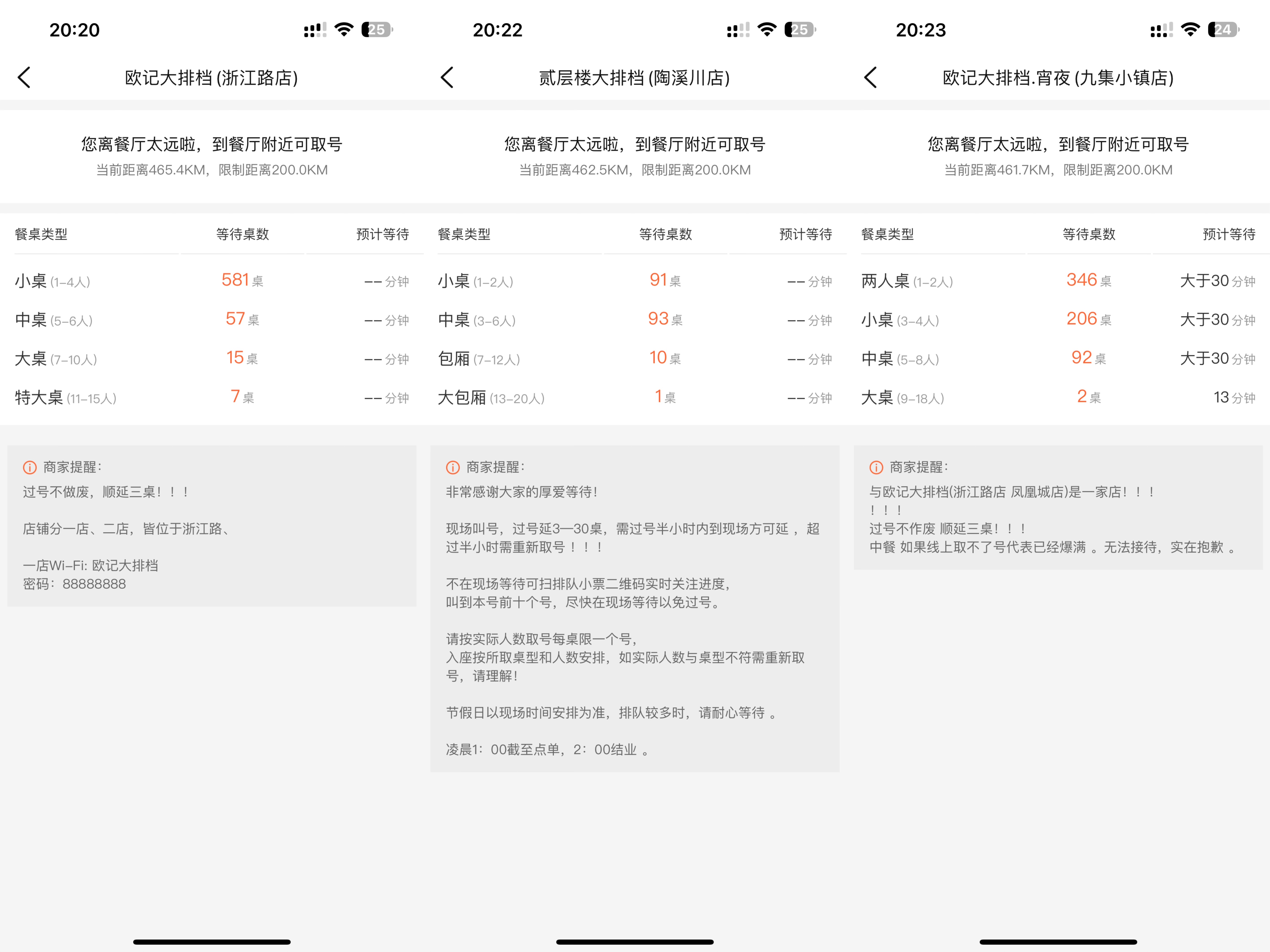 4月4日晚,澎湃新聞在大眾點評上搜索發(fā)現,景德鎮(zhèn)多家餐廳爆滿。如截至當日20:20,歐記大排檔浙江路店的小桌需等待581桌,中桌需等待57桌。截至當日20:22,貳層樓大排檔陶溪川店的小桌需等待91桌,中桌需等待93桌。截至當日20:23,歐記大排檔九集小鎮(zhèn)店的兩人桌需等待346桌,小桌需等待206桌,中桌需等待92桌。