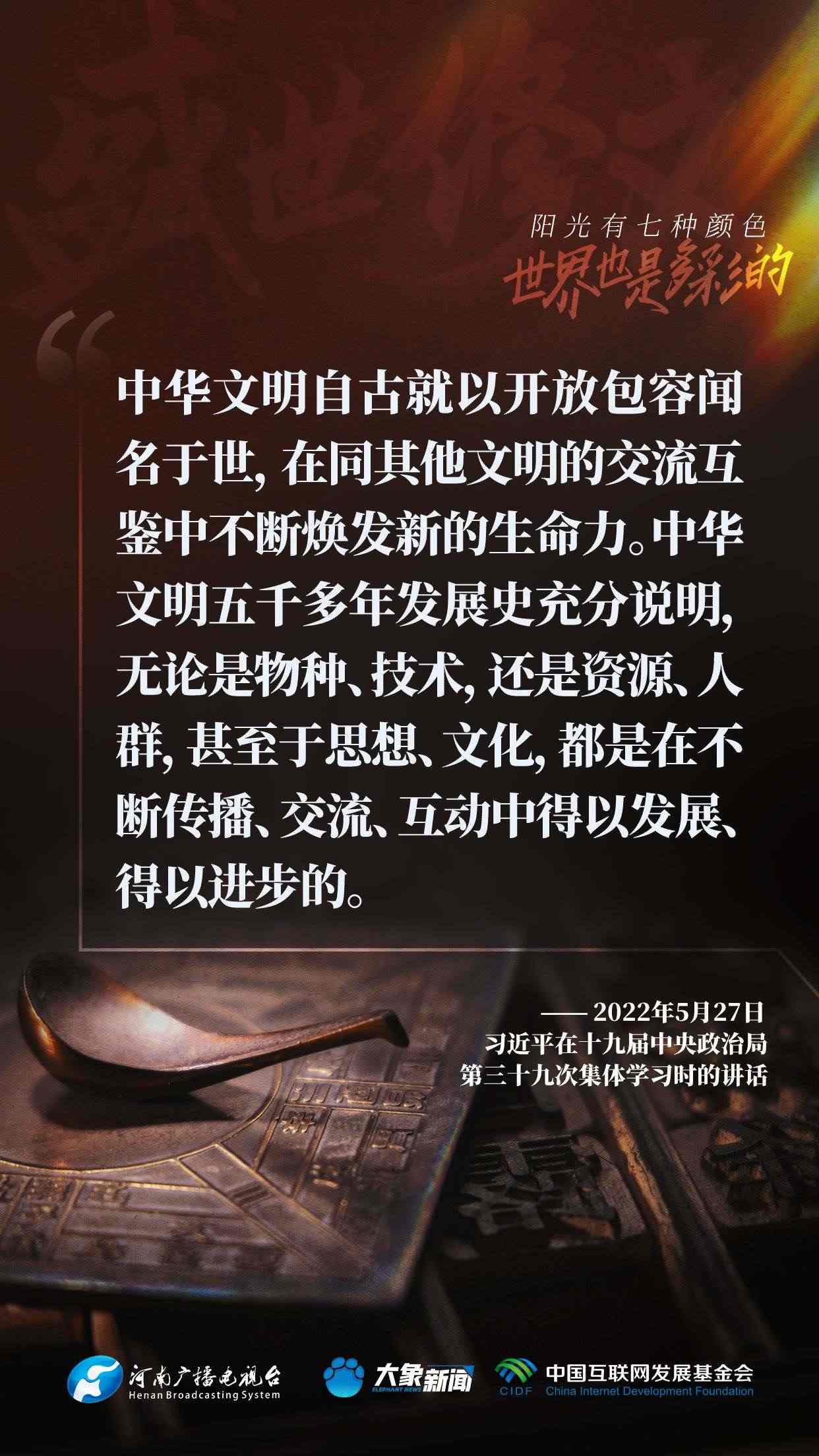 今天推出:習(xí)近平文化思想金句之《盛世修文|陽(yáng)光有七種顏色,世界也是多彩的》