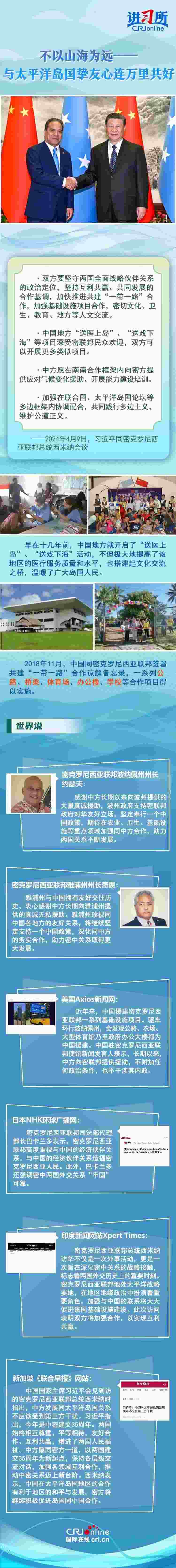 4月9日下午,中國國家主席習(xí)近平在北京同密克羅尼西亞聯(lián)邦總統(tǒng)西米納舉行會談時表示,每次見到太平洋島國的朋友,都感到很親切,中國地方“送醫(yī)上島”、“送戲下?!钡软椖可钍苊苈?lián)邦民眾歡迎,中方愿繼續(xù)為島國發(fā)展提供力所能及的支持,開展三方或多方合作。