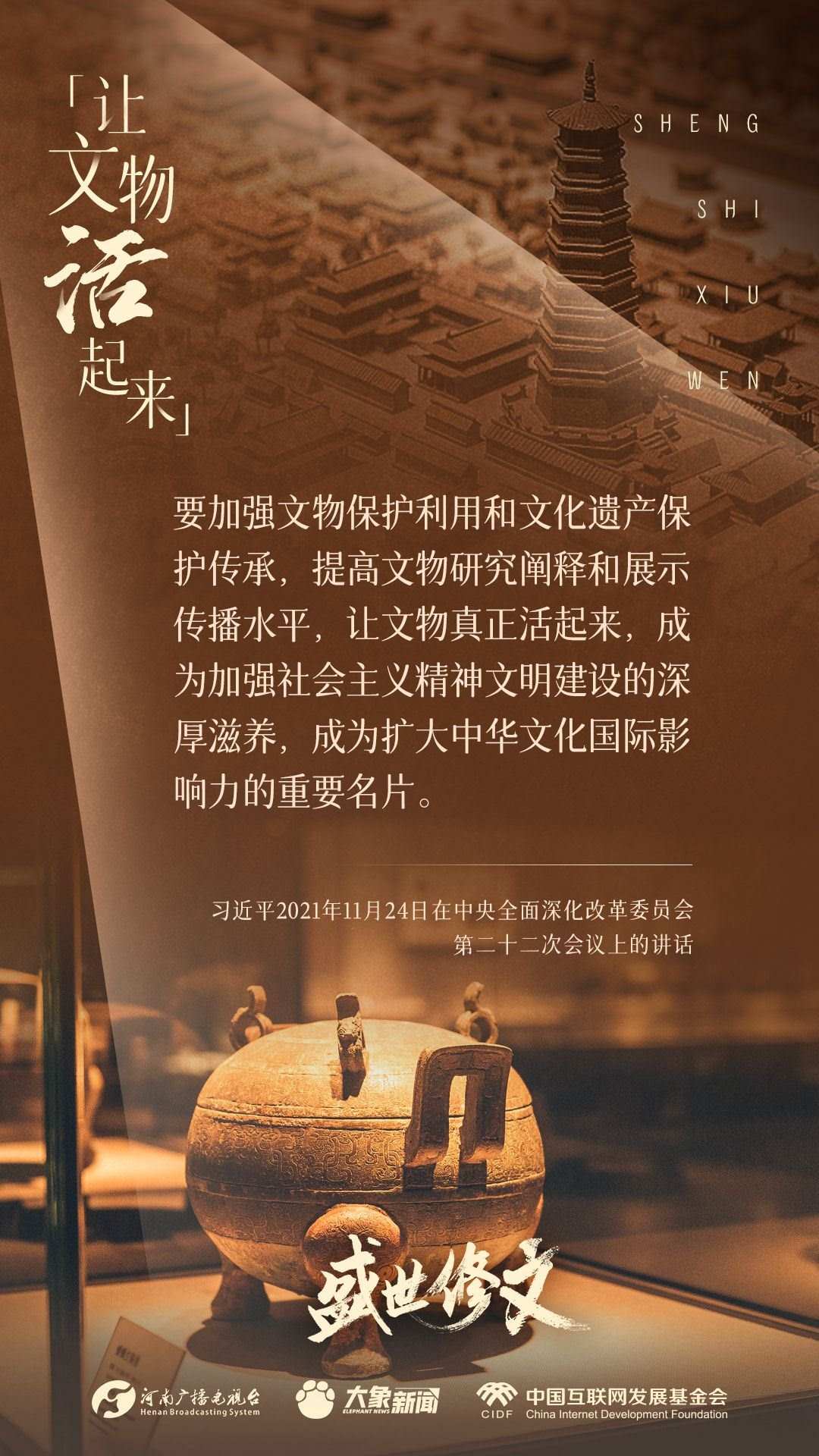 今天推出:習(xí)近平文化思想金句之《盛世修文|讓文物活起來(lái)》