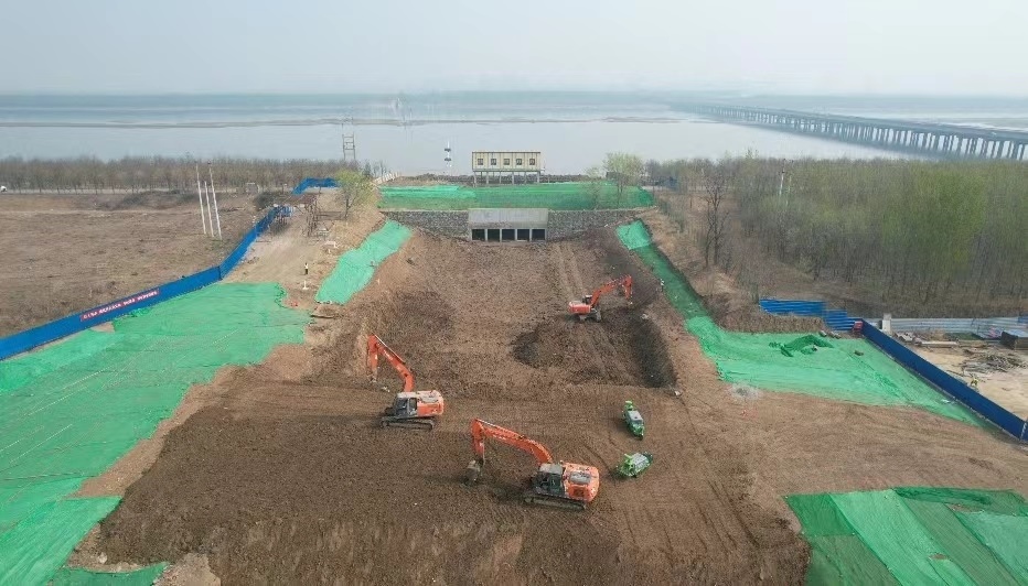 圖為天津靜海區(qū)良王莊泵站改擴(kuò)建工程施工現(xiàn)場(chǎng)。新華社記者 劉詩(shī)平 攝