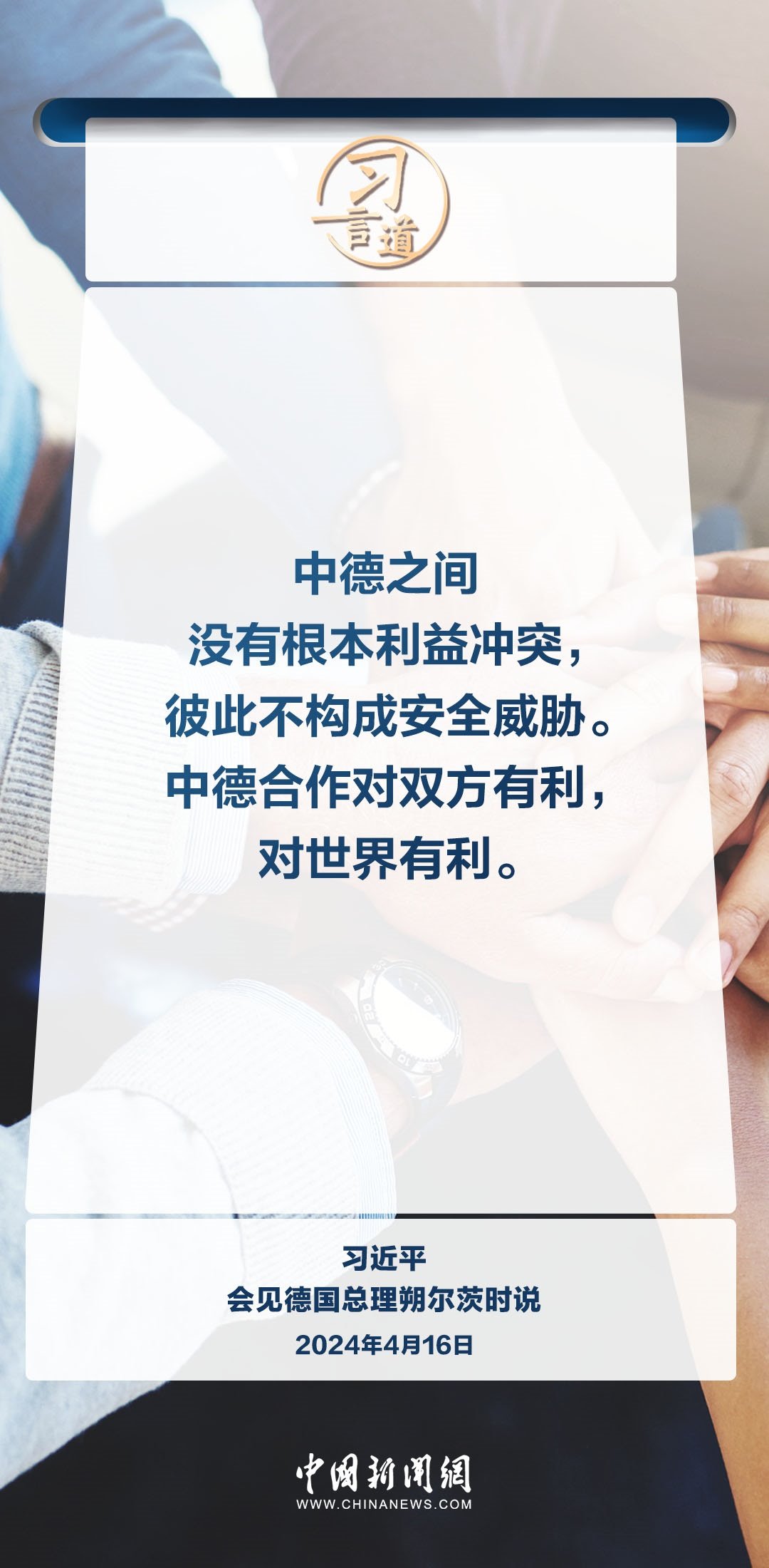 4月16日上午,國家主席習近平在北京釣魚臺國賓館會見德國總理朔爾茨。習近平指出——