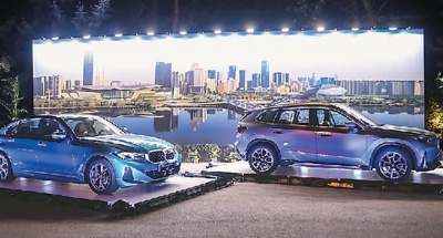 4月26日,遼寧省沈陽(yáng)市與寶馬集團(tuán)深化戰(zhàn)略合作簽約儀式在沈陽(yáng)舉行。寶馬集團(tuán)宣布,將繼續(xù)深化在華布局,增資200億元人民幣用于華晨寶馬大東工廠的大規(guī)模升級(jí)和技術(shù)創(chuàng)新。目前,沈陽(yáng)已成為寶馬集團(tuán)全球最大的生產(chǎn)基地和最重要的新能源汽車中心之一。圖為簽約儀式現(xiàn)場(chǎng)展出的寶馬電動(dòng)車產(chǎn)品。新華社記者 潘昱龍攝