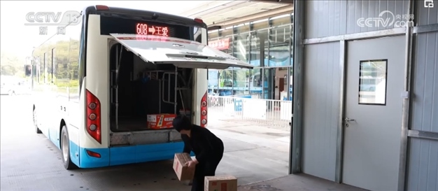 在專門(mén)定制的客貨郵公交車上,除了快遞包裹,還有一些團(tuán)購(gòu)的生活物資。司機(jī)介紹,因?yàn)榇謇锢先司佣?,到?zhèn)上買(mǎi)東西不方便,手機(jī)團(tuán)購(gòu)生活物資后,公交車就會(huì)一起帶到各村的集士驛站。