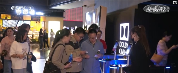 記者在北京五棵松的一家影院看到,多個(gè)放映廳檢票處觀眾正排著長隊(duì)檢票入場(chǎng)。