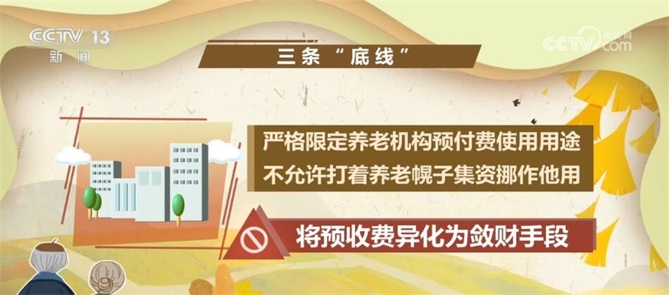 發(fā)布會上,民政部相關(guān)負(fù)責(zé)人介紹,《意見》還明確了三條安全“底線”:第一條是嚴(yán)禁養(yǎng)老機(jī)構(gòu)超過床位供給能力“一床多賣”;第二條是嚴(yán)格限定養(yǎng)老機(jī)構(gòu)預(yù)付費(fèi)使用用途,不允許打著養(yǎng)老幌子集資挪作他用,將預(yù)收費(fèi)異化為斂財(cái)手段;第三條是明確不得以承諾還本付息、給予其他投資回報(bào)等方式,誘導(dǎo)老年人及家屬交費(fèi),這是典型的非法集資行為。