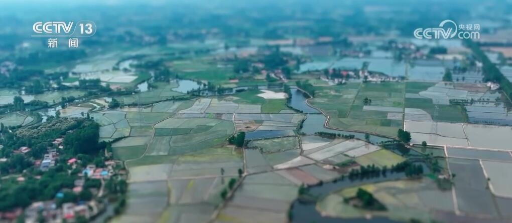 現(xiàn)在您看到的是河南信陽淮河以南的水稻插秧現(xiàn)場。插秧機在田間穿梭,一株株茁壯的秧苗被整齊有序地植入田間,一會兒工夫就插滿了整塊稻田??罩懈╊?,一臺臺插秧機在農機手的操控下好似一把把畫刷,在稻田上輕輕暈染,繪就丹青。而同在信陽,淮河以北的麥田里,則是金色的麥浪翻滾起伏,收割機馳騁田間,飽滿的麥穗被卷入機艙,經過收割、脫粒,顆粒歸倉。