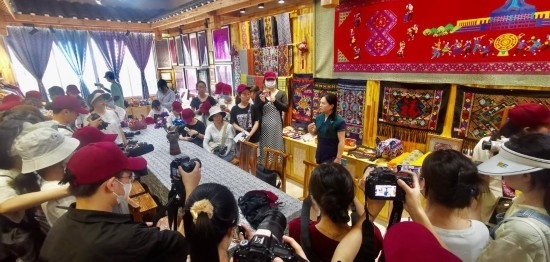 在廣西非遺形象體驗店“湘光織錦坊”的研學(xué)活動現(xiàn)場。(受訪者供圖)