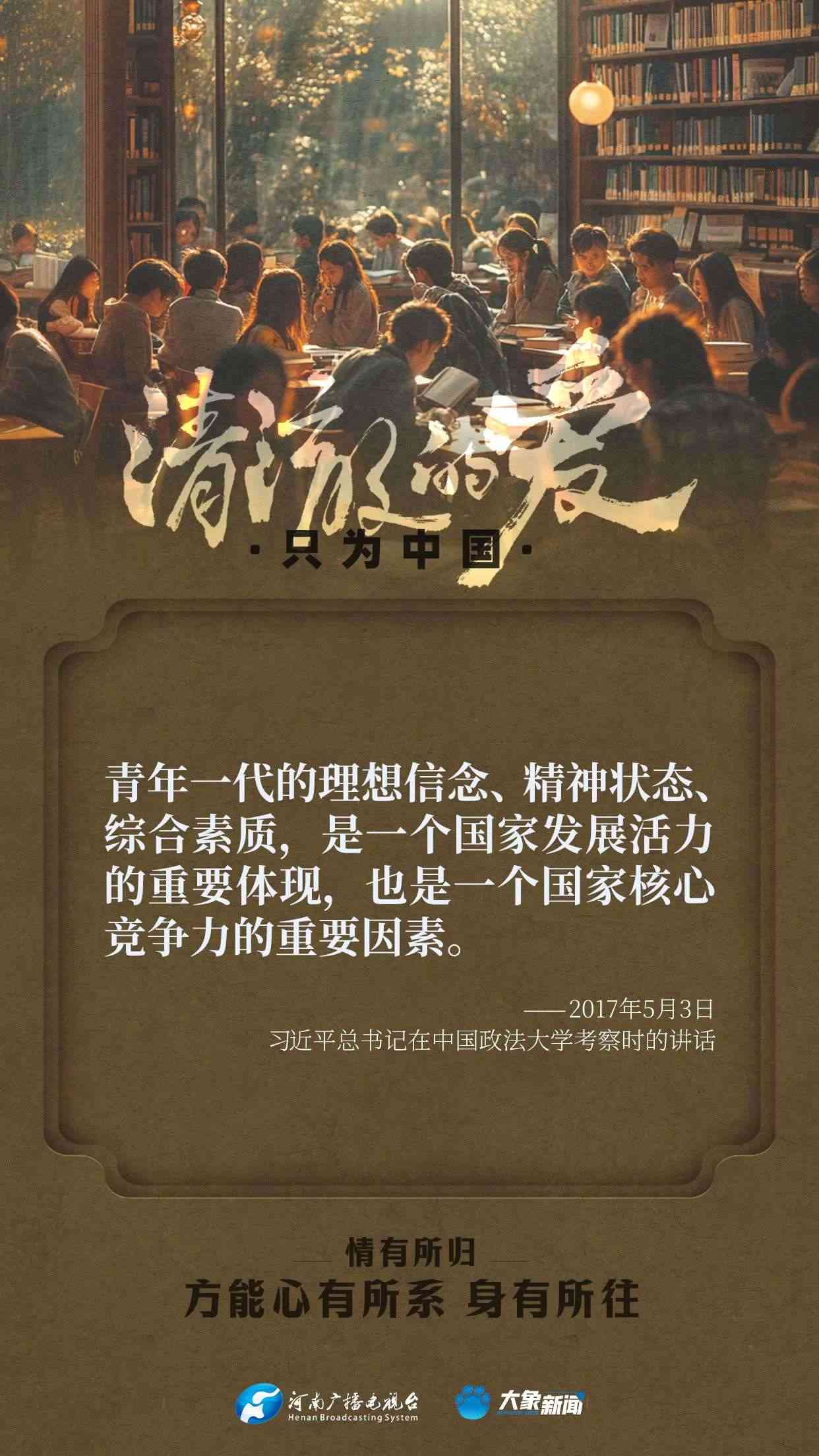 習(xí)近平總書記對(duì)廣大青年寄予厚望。黨的十八大以來(lái),他多次來(lái)到青年中間,同大家談人生、話理想,鼓勵(lì)青年人心系祖國(guó),志存高遠(yuǎn),腳踏實(shí)地,在奮斗中創(chuàng)造精彩人生,為祖國(guó)和人民貢獻(xiàn)青春和力量。