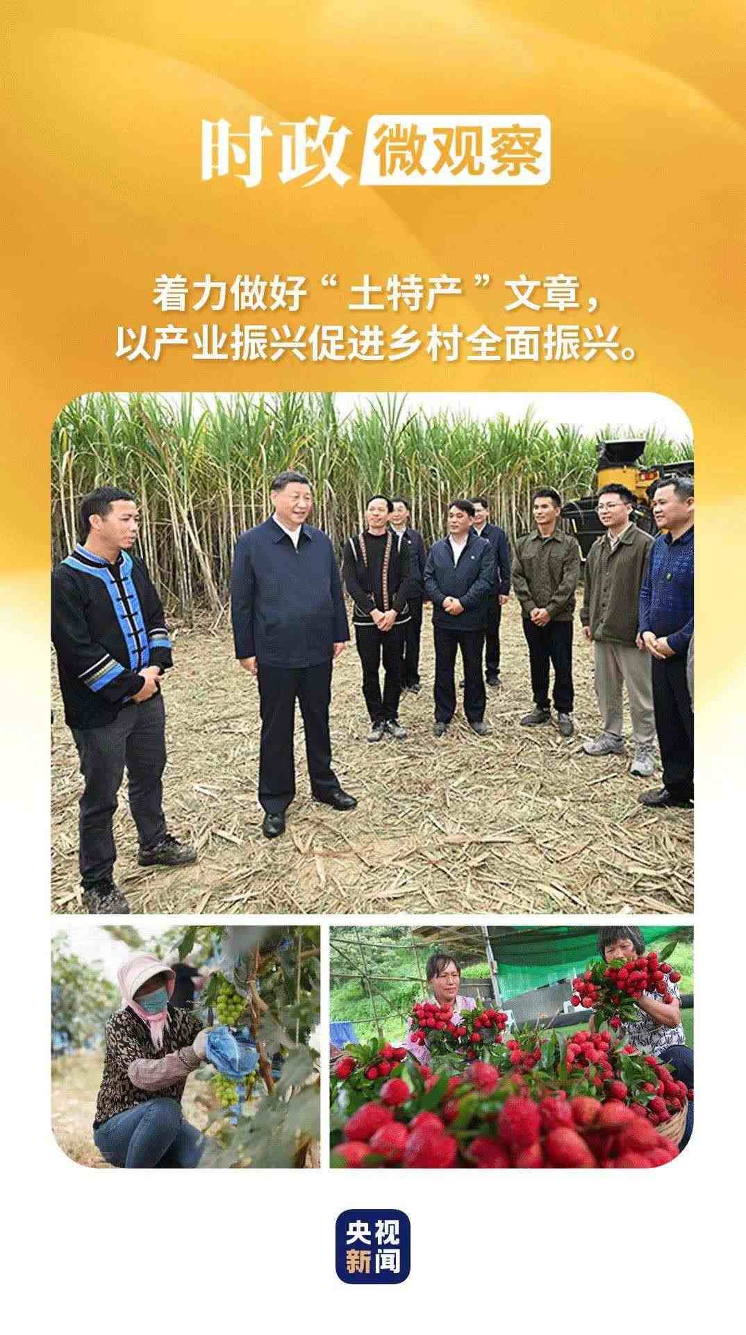 習近平總書記強調,要著力做好“土特產”文章,以產業(yè)振興促進鄉(xiāng)村全面振興。在地方考察時,他多次來到大棚里、田埂上、果樹間、農舍前,為特色產業(yè)謀思路、為農民致富找門路。