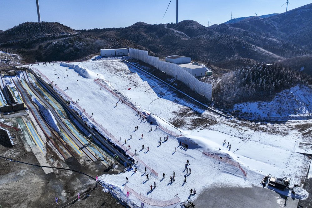 2025年1月23日,游客在湖北神農(nóng)架中和國際滑雪場滑雪。湖北省神農(nóng)架林區(qū)冬季降雪量豐富、雪質(zhì)蓬松,為中部地區(qū)滑雪愛好者提供了良好的練習(xí)環(huán)境。