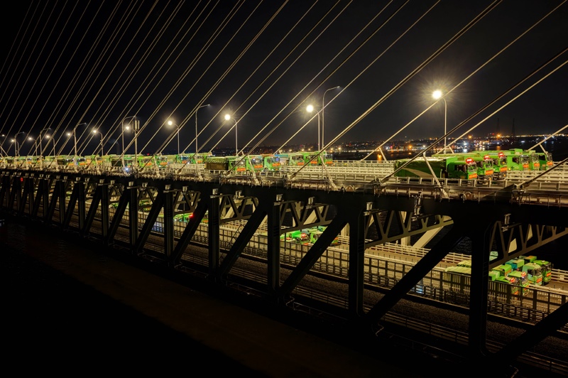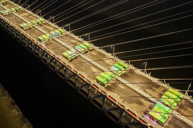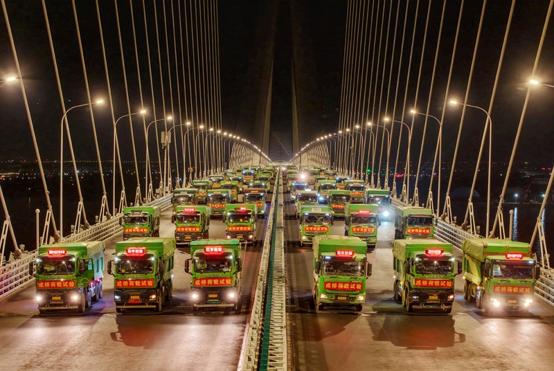 6月20日晚,常泰長(zhǎng)江大橋主航道橋進(jìn)行4400噸荷載試驗(yàn),110輛重型卡車駛上主航道橋面,啟動(dòng)靜態(tài)荷載試驗(yàn)。自6月16日起,常泰長(zhǎng)江大橋開啟為期一周的荷載試驗(yàn),對(duì)大橋承載力和安全性進(jìn)行全面評(píng)估。