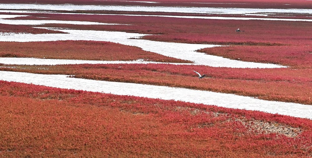 盤錦遼河口潮間帶,堿蓬草向陽生長。堿蓬草不僅能固碳,還能抵御海浪侵蝕。盤錦市自然資源局副局長孫磊蹲在灘邊說:“堿蓬草對生態(tài)環(huán)境很敏感,以前自然岸線破壞、海水鹽度變化曾使堿蓬草大量減少,如今,大片堿蓬草到秋天就會變紅,這是生態(tài)向好的最佳信號。”