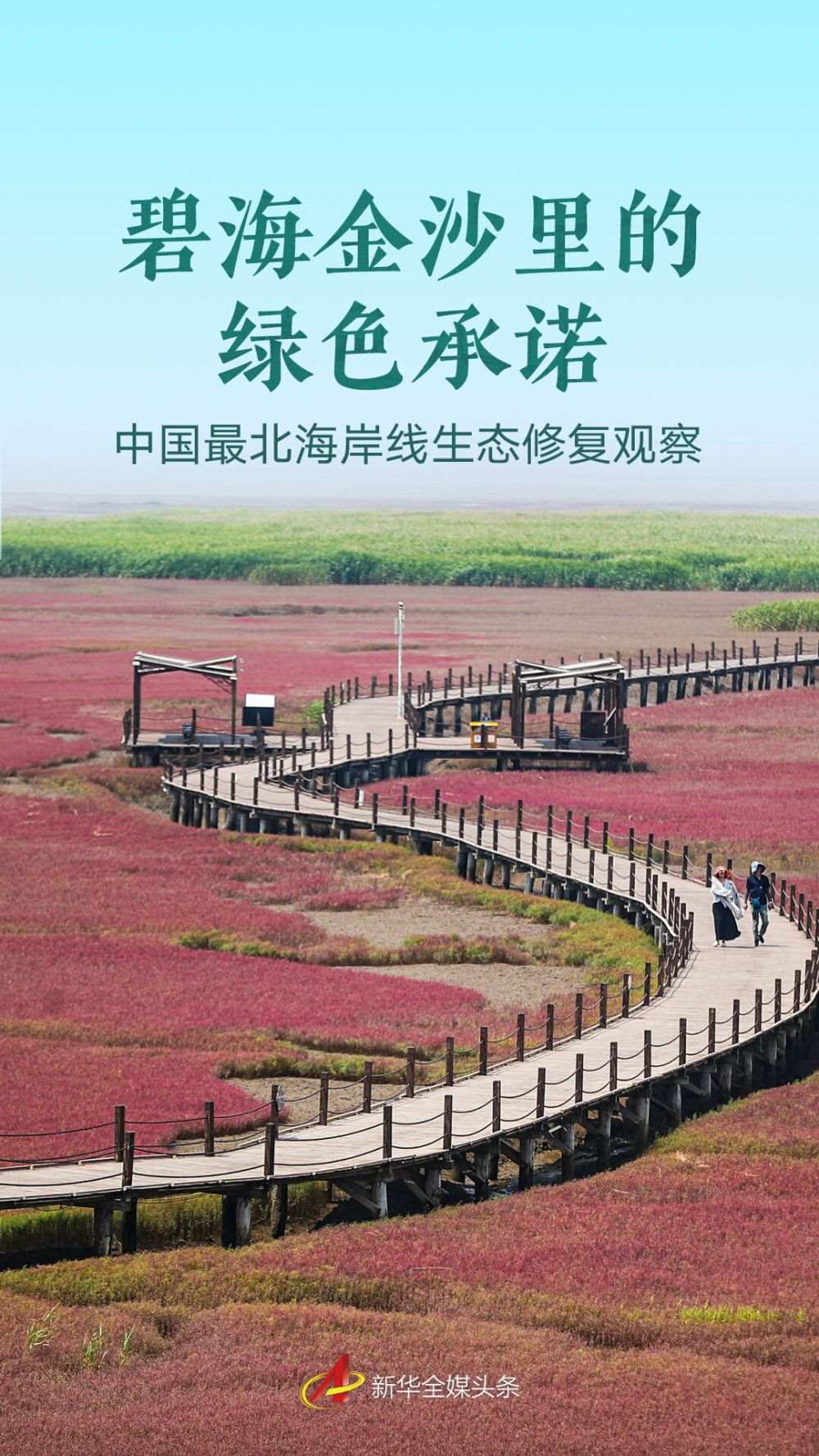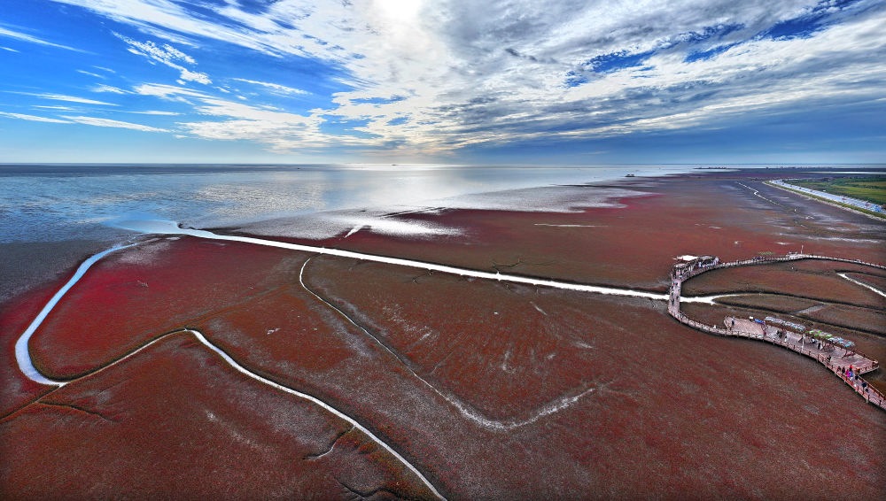 遼寧海濱,北緯39度的海風(fēng)掠過浮光躍動的海灣,丹頂鶴在紅海灘間蹁躚起舞;海岸線上,執(zhí)法船在巡航,電子眼守護著潔凈的沙灘;沙灘上,志愿者拾起漂浮的塑料瓶……交織成一幅動人的生態(tài)畫卷。